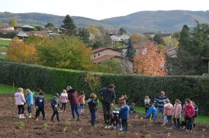 Le chantier a également intégré une dimension pédagogique avec la participation des élèves de l’école voisine. Sur une demi-journée, les enfants ont été associés à la plantation aux côtés des équipes.